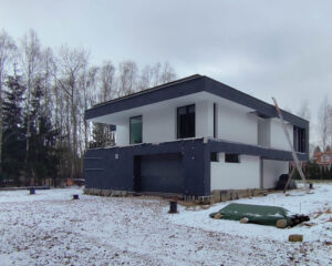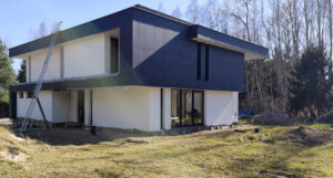 Efekt? Dom stał się elegancki, spokojny i czytelny. Z nieudanej, rozedrganej bryły wyrósł dojrzały, współczesny pavillon, który naturalnie wpisuje się w otoczenie brzóz i sosen. Kontrast między czarnymi pasami HPL a białymi płaszczyznami tynku nadaje całości lekkość i wyrazistość. Najważniejsze jednak, że zniknęły przecieki – dach i elewacje pracują razem jak szczelna powłoka, a inwestor po raz pierwszy od lat przestał obawiać się deszczu. Przebudowa rewitalizacja elewacji.